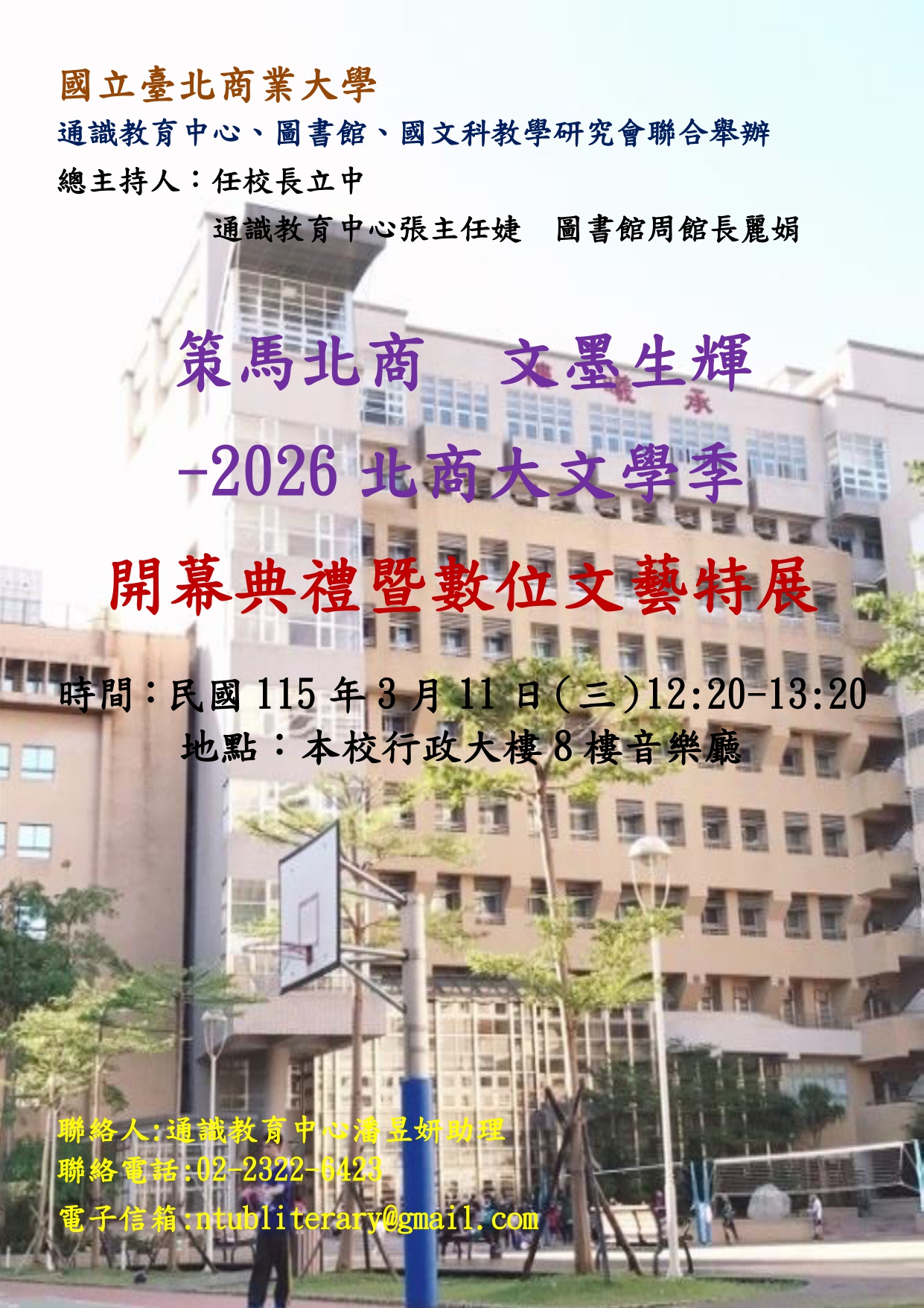 本校通識教育中心、圖書館、國文科教學研究會聯合舉辦之 【策馬北商 文墨生輝-2026北商大文學季】,